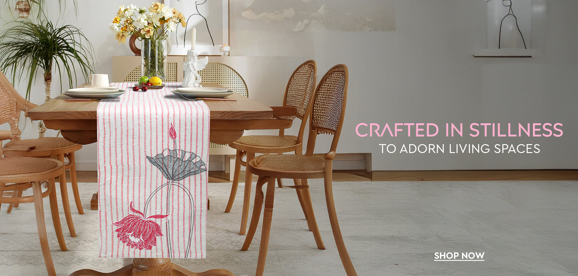 Table Runner | Kadam | Chikankari | Cotton Linen